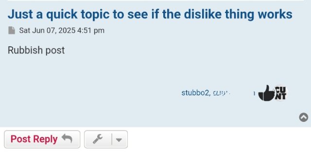 El Scorchio" wrote: ↑08 Jun 2025, 10:10 If you really disagree with something you’re going to say it anyway so a dislike button feels redundant apart from for passive aggressive trolling of people.