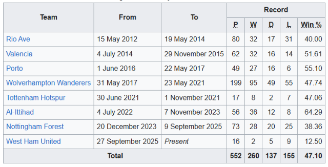 All I'd point to with Nuno is his results in the other jobs he's had: