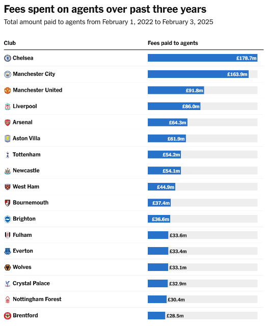 Wonder if any of these 'fees' make their way back to those involved in the deal on the Club side of things?! Maybe if you had a 'special relationship' with an Agent in use?