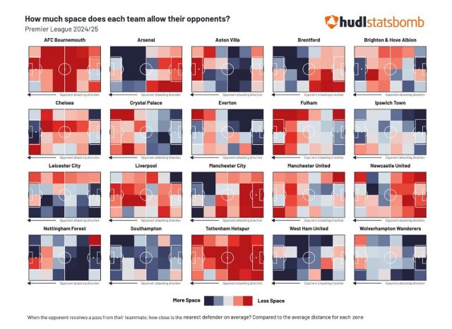 Re: How much space each team allows their opponent across the pitch